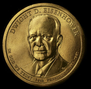 Here is a nice die clash showing on the obverse and reverse of a 2015P Eisenhower Golden Dollar.