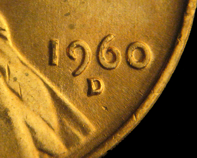 This 1960D small date Lincoln cent shows a radical titled die clash through the letters TES of STATES. The obverse die does not show clash marks which indicate that the die was changed out or the die was abraded to remove those marks.