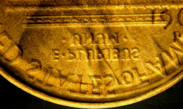 The line through the top of the word STATES is related to the lettering clash marks under Lincoln’s bust and are consider to be part of the 3 / 4 clash event. The five clash event shows a clash mark generated by the top of Lincoln’s head through the NE of ONE and the CE of CENT. The opposing clash marks that should appear ion the obverse die have bee successfully abrade from the obverse die.