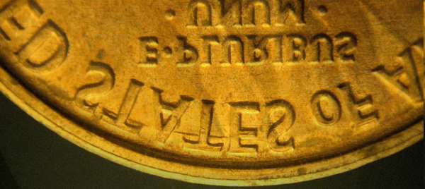 The above pictures show a tilted die clash that is found on a 1960D small date Lincoln cent. Noticeable is the top of the TE from the word STATES under Lincoln’s bust. Also note that the line left by the bottom of Lincoln’s bust is slightly askew from normal.