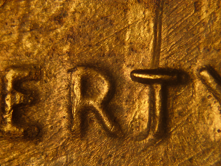 Here we have a nice clashed die example on a 1972D Lincoln cent. While there was evidence of a slight second clash (see the area around RTY in LIBERTY), the marks are largely confined to one set and on the obverse. We see some of that changed sheen to the surface of die wear the two fields made contact. This clash also has a minor RPM similar to CONECA 1972D RPM-007 and has slight finned rim from K7 to K1. (This die comes from the second master die for 1972 and has engraving doubling). The reverse shows abrasion, but little specific evidence of this exact clash.