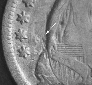 The field and Liberty’s left arm generated the die clash seen in the image to the right.