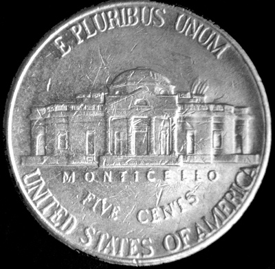 The throat area of Jefferson can be seen clashed just below the L of PLURIBUS