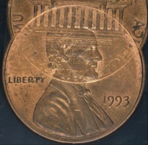 Radical MAD clash marks can be found extending east from the bottom of Lincoln’s beard on the obverse  and can be found at the rim above the O of OF on this 1993 Lincoln memorial cent.  A die chip can be found to the west of the bottom of the 3 of the date, a small die chip is above the upright of the B of LIBERTY and multiple die chips are within the lower E of CENT.