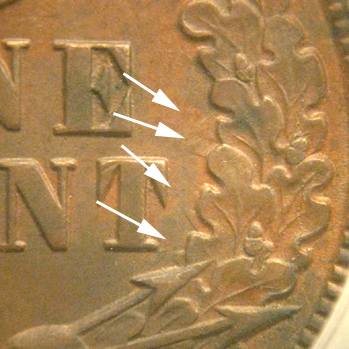 This 1887 Indian head cent shows a single clash event on both the obverse and reverse dies. This coin is in the collection of Robert Russell.