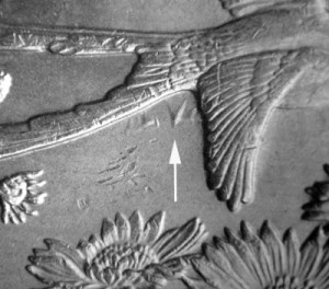 Notice the die clash from the obverse under the wing and tail of the scissor tailed flycatcher.