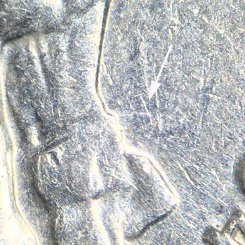 This is a typical clash event found on a 1984-P Jefferson nickel. This coin is in the collection of Kevin Mader.